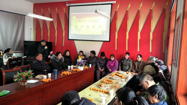 帮扶单位园林环卫站、县机关工委、双石铺镇、十里店村帮扶干部与参加活动的乡亲合影留念